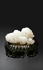 玉質晶瑩細膩,柔媚亮澤??钚托銡獾溲牛{子身形圓胖,闊嘴寬鼻,懷抱繡球,姿態婉轉可愛,雕琢利落,形象生動。獅子,表示勇敢,兩個獅子寓意事事如意,一大一小獅子寓意太師少師,意即位高權重。