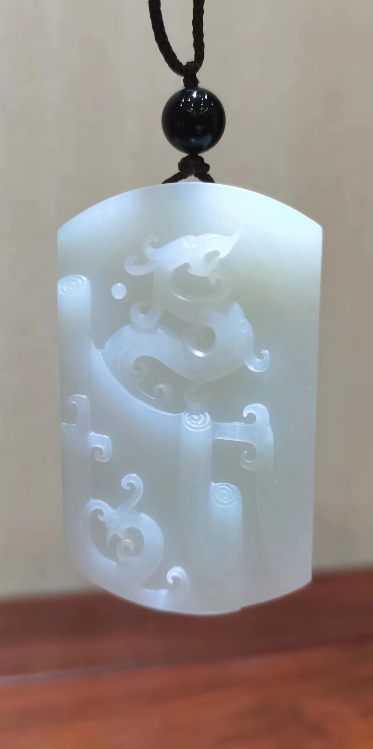 此款和田玉龍牌,雕工嫻熟,自然流暢,線條優(yōu)美,雕刻祥龍在道山學海搏擊翻騰、穿躍海天、學業(yè)有成,終能遨游天際、叱詫風云。故得名:大業(yè)有成